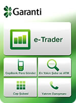 The e-Trader application can be downloaded from the Apple Store. To be able to perform trading transactions, you need a stock and/or TurkDex agreement from Garanti. To perform trading transactions, all you have to do is to log on to Mobile Banking that opens up within the application.